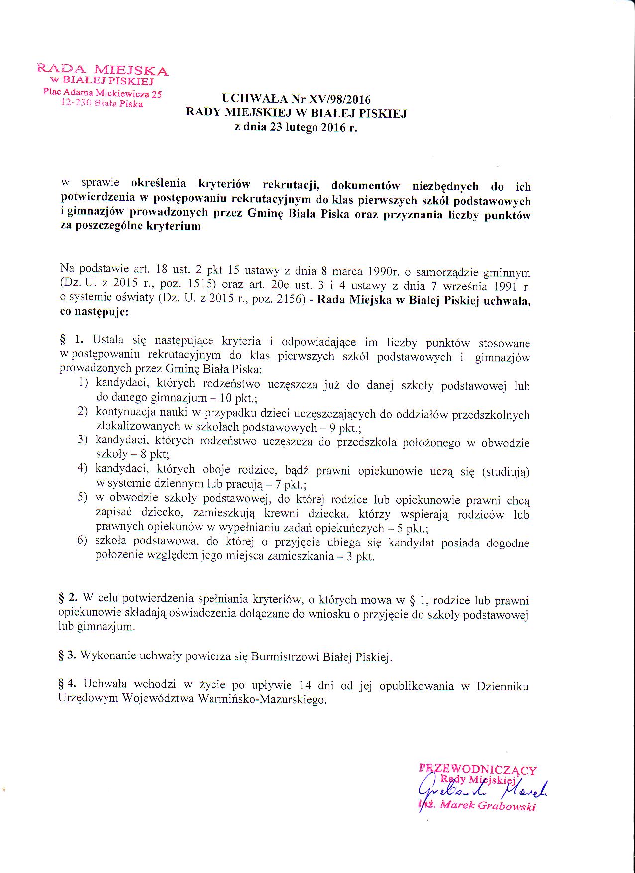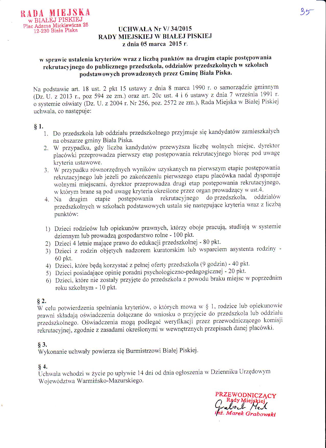 Dariusz Jurczykowski) - Dodanie załącznika [uchwalakryteriado_przedszkoli.jpg] do dokumentu. (Dokument opublikowany)